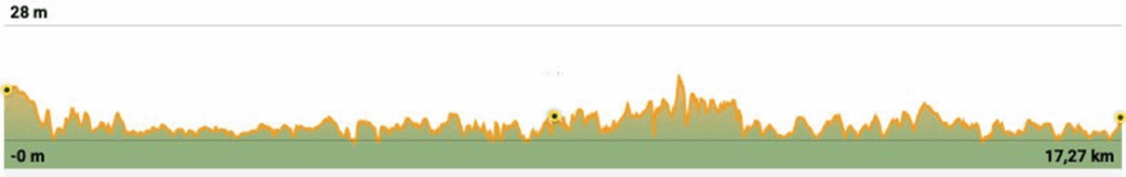 - Longitud i desnivell: 17,27km / + 68m / -84m